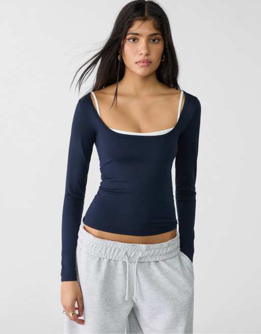 Stradivarius Seamless long-sleeved t-shirt in navy blue
