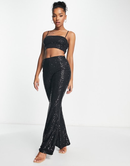 Stradivarius sequin crop top & bottoms in black co-ord