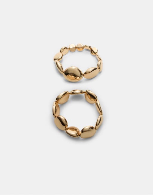 Stradivarius Set of 2 voluminous elasticated bracelets in gold