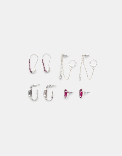 Stradivarius Set of 4 pairs of shiny earrings in grey