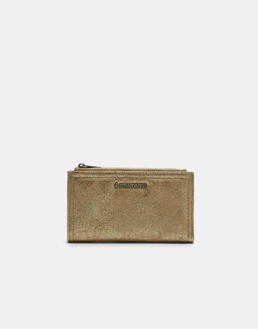 Stradivarius Shimmery wallet with zip in yellow