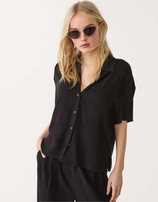 Stradivarius short sleeve shirt with linen in black