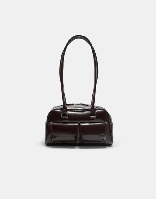 Stradivarius Shoulder bag with pockets and long strap in brown