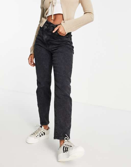 Stradivarius slim mom jean with stepped waistband in washed black