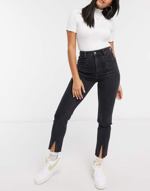 Stradivarius split front mom jeans with stretch in black