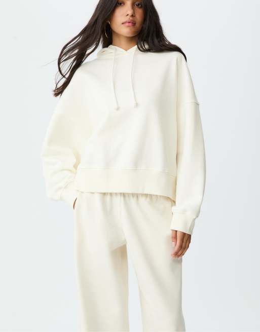 Stradivarius Star and leopard print hoodie in ecru