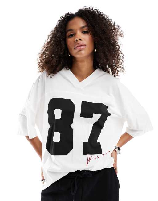 Stradivarius STR '87' oversized baseball shirt in white