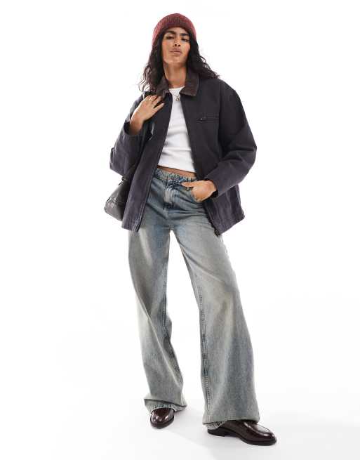 Stradivarius STR barn jacket with corduroy collar detail in black