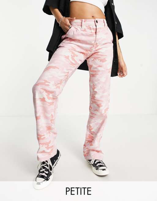 Stradivarius STR Petite wide leg cargo trouser in pink camo print