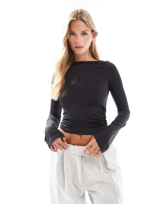 Stradivarius STR sculpt flare sleeve top in black