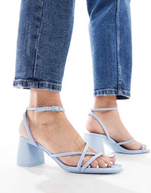 Stradivarius strappy block heeled sandal in blue
