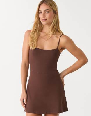 Stradivarius strappy playsuit dress in brown
