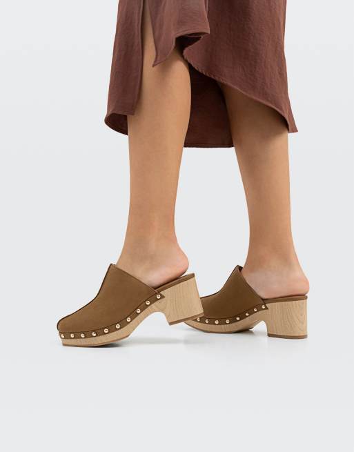 Stradivarius suede clog in brown