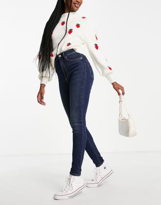 Stradivarius super high waist skinny jean in dark wash