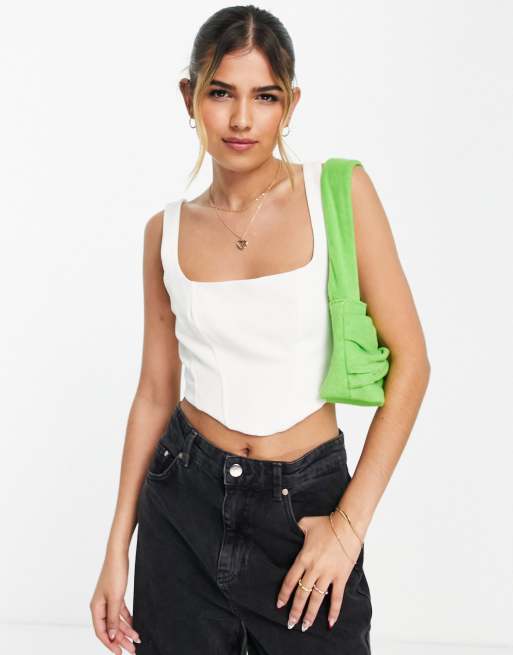 Stradivarius tailored corset top in white
