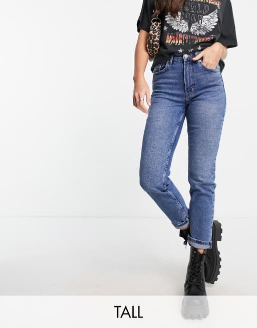 Stradivarius Tall slim mom jean with stretch in authentic blue
