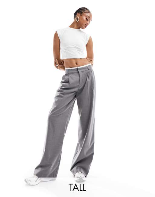 Stradivarius Tall tailored wide leg trouser with boxer waistband in grey