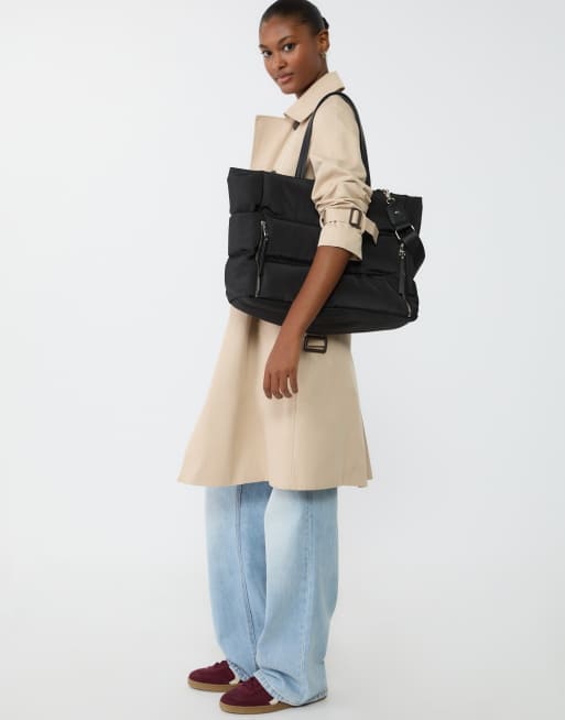 Stradivarius tote bag with zips in black