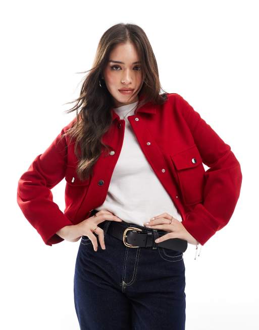 Stradivarius wool look trucker jacket in red