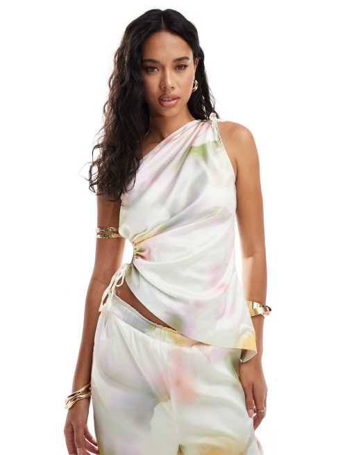 Style Cheat cowl front cami top in pastel marble print co-ord