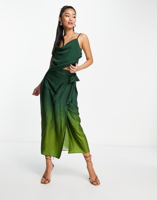 Style Cheat satin midi skirt co-ord in green ombre