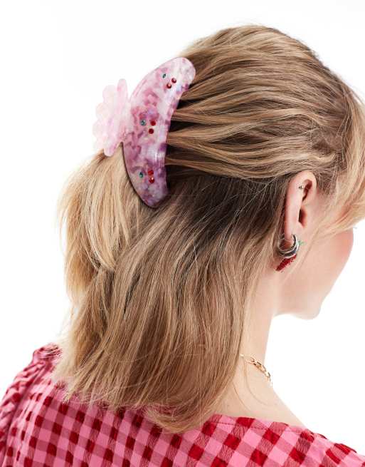 SUI AVA cherry up embellished big hair claw clip in pink