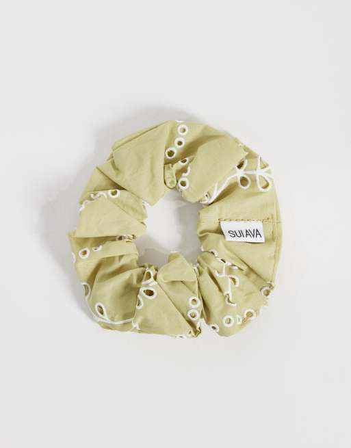Sui Ava floral broderie hair scrunchie in green