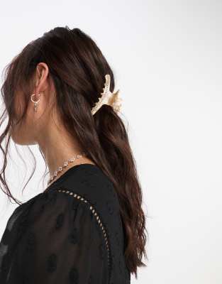 SUI AVA helen wrapped big diamante hair claw clip in beige