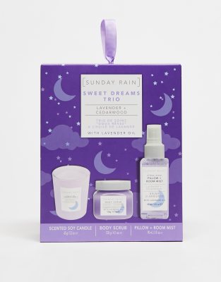 - If you’re the kind of person who likes a bubble bath and series binge after a busy day, then Sunday Rain is for you. Big on self-care, its range of heavenly scented bath and body products gives your ‘me time’ a serious upgrade. Shop our edit of the brand’s foot soaks, massage oils and bath crystals.