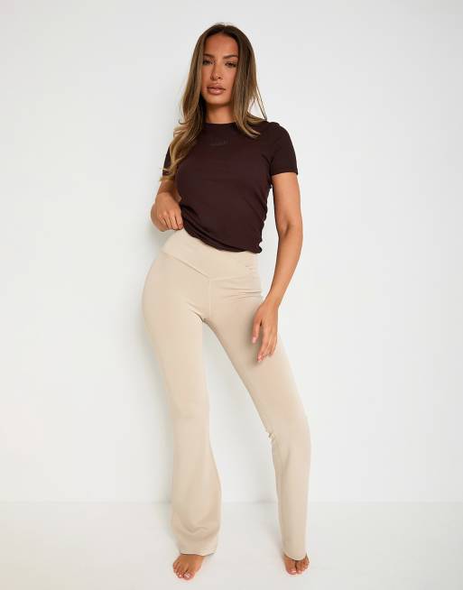 Sunde velour touch wrap high-waisted flare leggings in latte