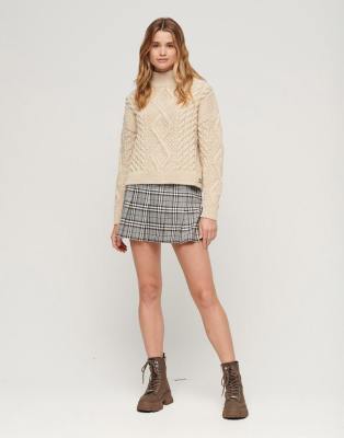 Superdry Aran cable knit polo jumper in ecru