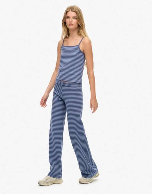 Superdry Athletic essentials fold over joggers in mariner navy/tidal blue stripe