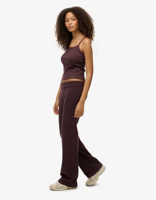 Superdry Athletic essentials fold over joggers in port red/charcoal stripe