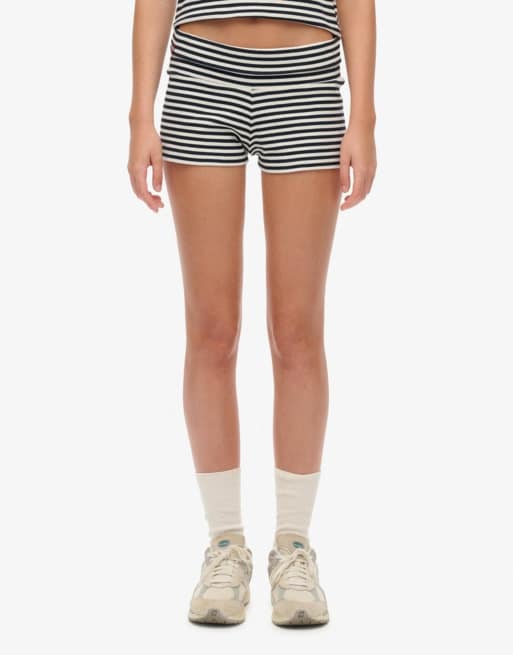 Superdry Athletic essentials fold over short in eclipse navy stripe