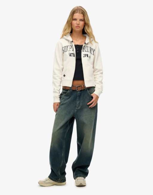Superdry Athletic essentials relaxed cropped zip hoodie in desert bone off white