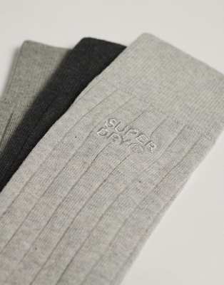 Superdry Cotton unisex core rib crew sock 3 pack in charcoal grey marl