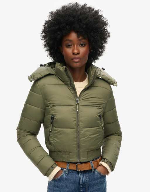 Superdry Crop hooded fuji jacket in dusty olive green