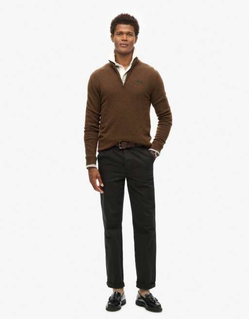 Superdry Essential embroidered knitted half zip jumper in woodland brown