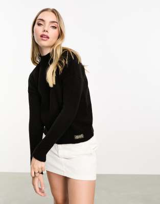 Superdry essential mock neck jumper in Bitter Chocolate Brown