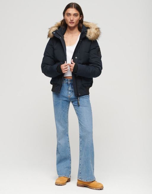 Superdry Hooded everest puffer bomber jacket in nordic chrome navy