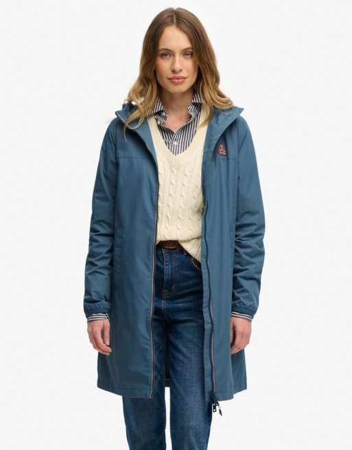 Superdry Longline tri coloured windbreaker jacket in dry slate blue