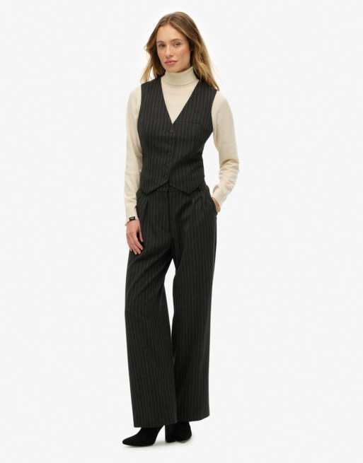 Superdry Mid rise pinstripe trousers in charcoal pinstripe