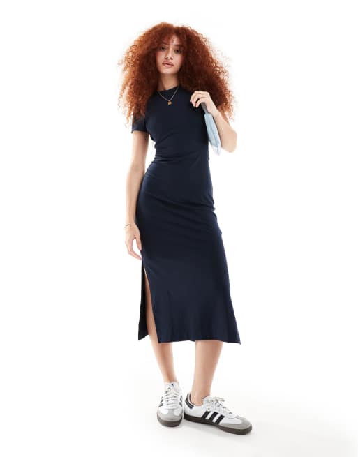 Superdry Midi t-shirt dress in navy blue