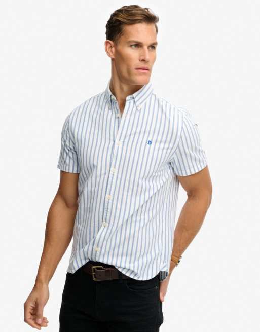 Superdry Preppy oxford short sleeve shirt in blue beach stripe