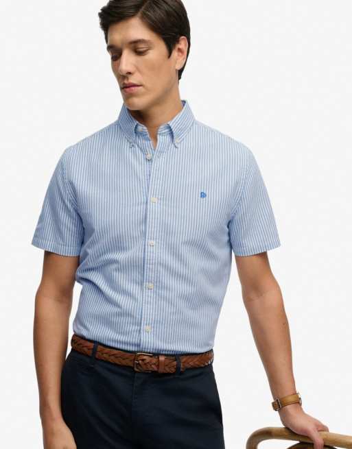 Superdry Preppy oxford short sleeve shirt in sky blue stripe