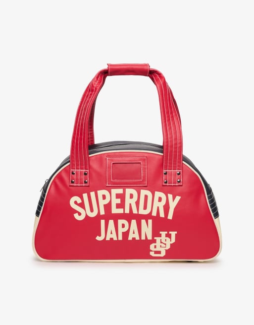 Superdry Retro alumni bowling bag in red/eclipse navy/cream