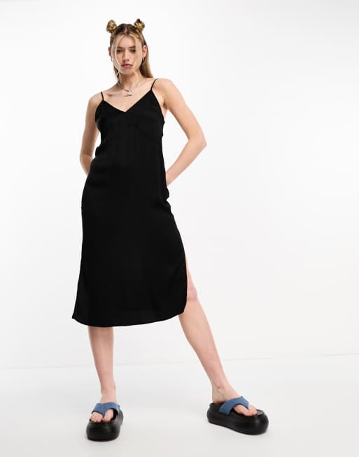 Superdry satin cami mini slip dress in black
