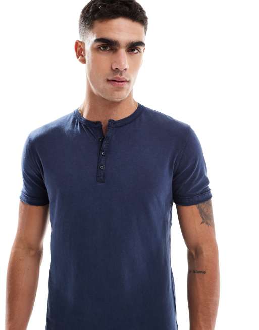 Superdry Slub short sleeve jersey grandad top in lauren navy