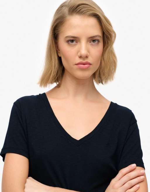 Superdry Studios slub embroidered tee in eclipse navy