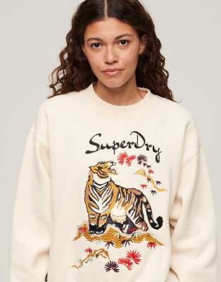 Superdry Suika embroidered loose sweatshirt in oatmeal beige